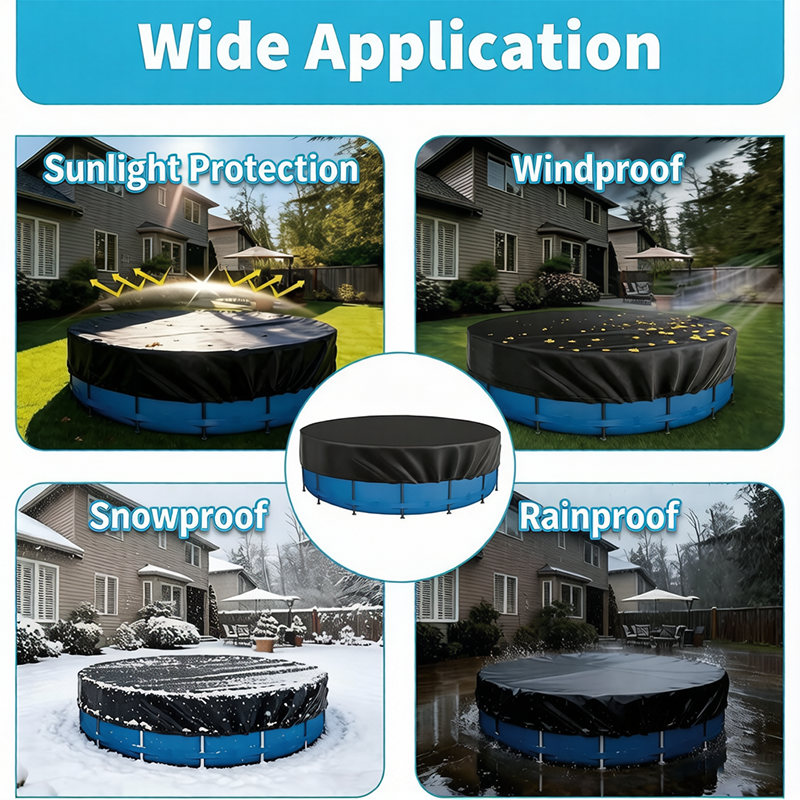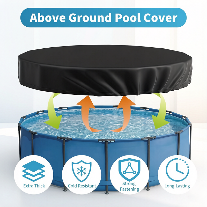 Designed specifically for 10ft round metal frame above ground pools, this extra thick and durable pool cover delivers exceptional winter protection against leaves, debris, and dirt to ensure a quick and easy spring setup. Crafted from high-strength Oxford fabric with a rainproof coating and laminated polyethylene, this weather-proof cover is tear-resistant, UV-treated to block sunlight, and features high-density stitching for excellent tensile strength and extended lifespan. Equipped with an adjustable rope tie and upgraded barbed stakes, it withstands strong winds and heavy rain while staying securely in place all season long. Please note that this cover is specifically designed for 10ft round metal frame pools and is not suitable for inflatable pools, hot tubs, pet pools, or other round outdoor furniture.